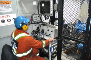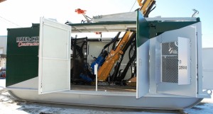 on skid with cab